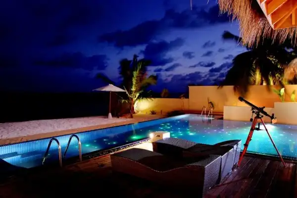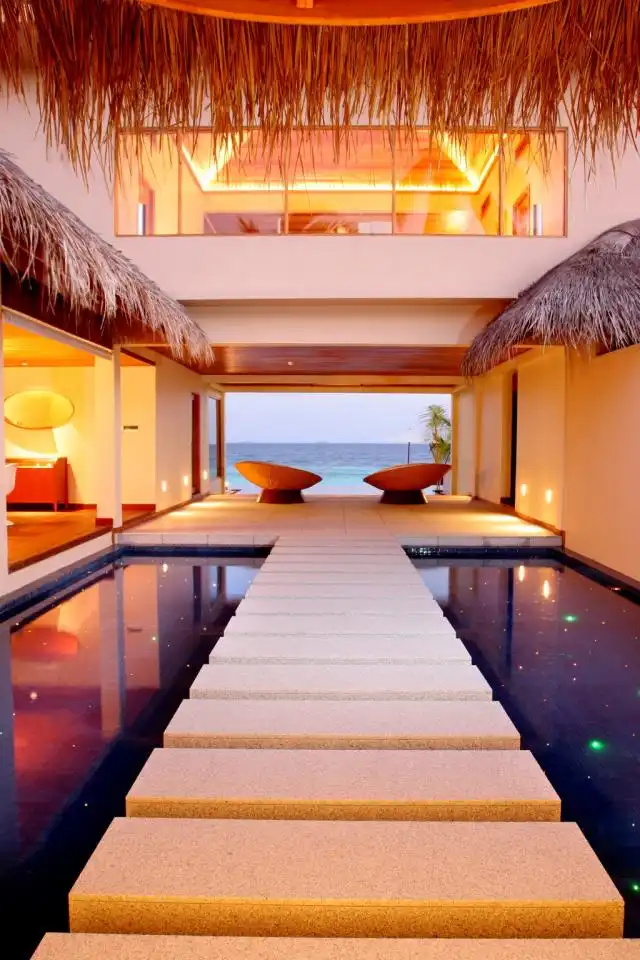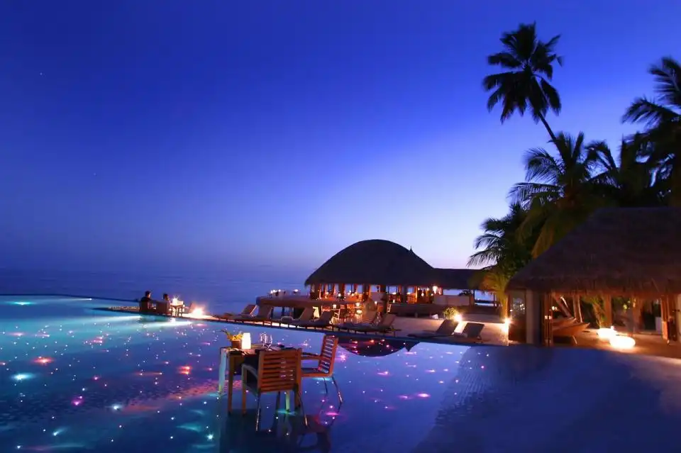 К примеру, построенный в его собственной частной лагуне Huvafen Fushi — отель, облюбованный голливудскими знаменитостями, среди которых Том Круз и Анджелина Джоли. Когда Вы прибываете сюда, управляющий гостиницей приветствует Вас и просит снять Вашу обувь прежде, чем провести в обитель мечты. Гостей селят в бунгало, установленное на сваях в сказочном океане с его собственным пресноводным пулом бассейном и частной палубой для загара. Отдельно стоит упомянуть и стеклянные этажи, 24-часовое обслуживание дворецкого и множество других интересных особенностей. У каждой комнаты есть встроенная аудиосистема Bose с 10,000 песен, запрограммированных в ней. Если Вы предпочитаете более традиционный подход, Вы можете выбрать исключительный опыт в деревянном Дони, традиционном для Мальдивов, где Вы можете наслаждаться едой, приготовленной Вашим персональным поваром, и плавать на лодке к идиллическим островам архипелага.