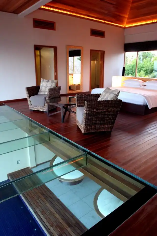 Отель специализируется на здоровой еде для процветающего здоровья и изящного вкуса. Для забавы Вы можете поплавать у рифа, заняться дайвингом или арендовать традиционное каноэ, исследуя бирюзовые воды. Можно также воспользоваться услугами собственного морского биолога отеля, который поможет исследовать и определить редкие породы морской жизни. Вечером у Вас может быть романтический ужин, подобный тому, который устраивают знаменитости в их медовый месяц. Но стоит учитывать, что отдых в таком месте стоит не дешево. Начальная стоимость составляет 1200 USD в сутки.