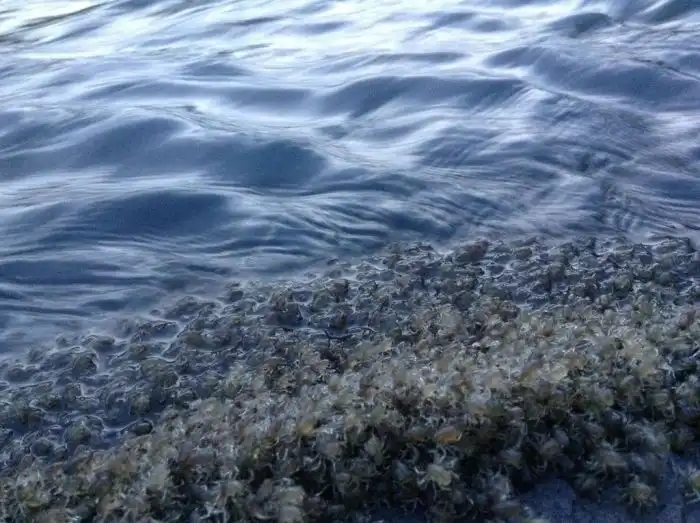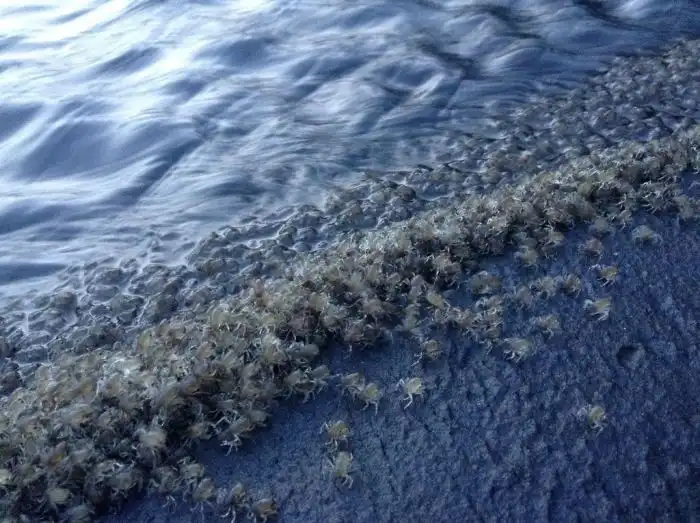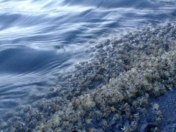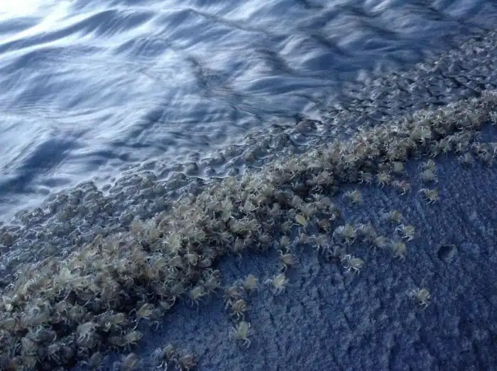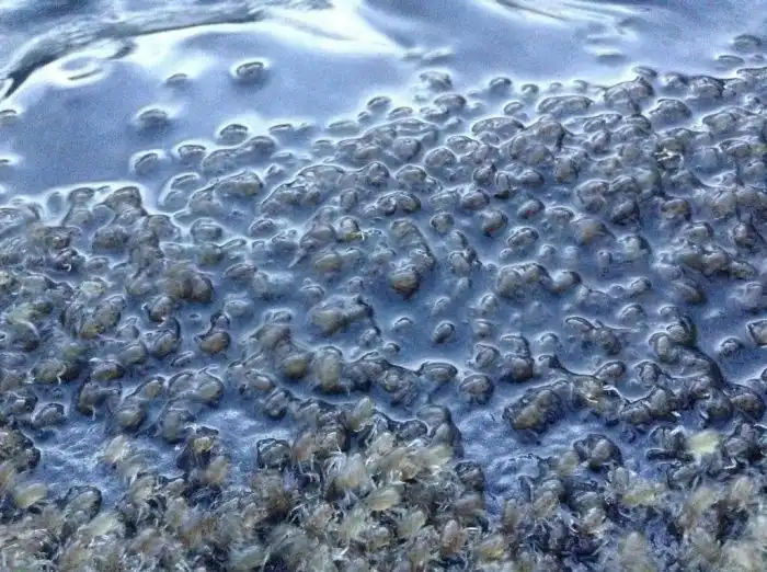Автор этих фотографий был очень удивлен, когда он вышел из своей гостиницы и решил умыться водой из близлежащей речки. Когда он подошел к ней, то сразу обратил внимание на странное движение по краям потока воды :)
