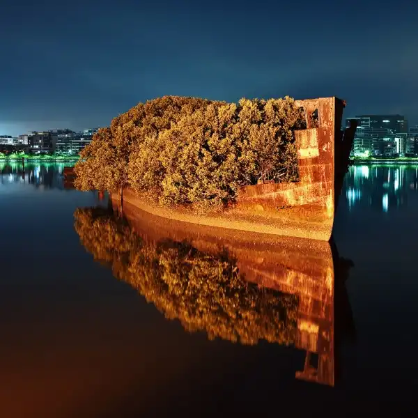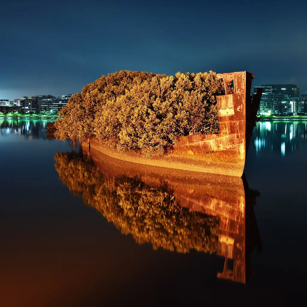 Так случилось и с британским паровым судном SS Ayrfield, которое вот уже много лет стоит заброшенным у берегов Олимпийской деревни в Сиднее, и его ржавый корпус за это время превратился в настоящие мангровые заросли. Второе название корабля - “The Floating Forest”, что буквально означает «Плавающий лес»