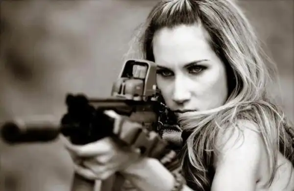 Грозное оружие в руках красивой девушки это и опасно и сексуально!
