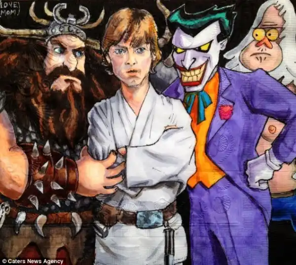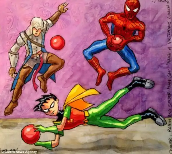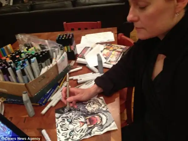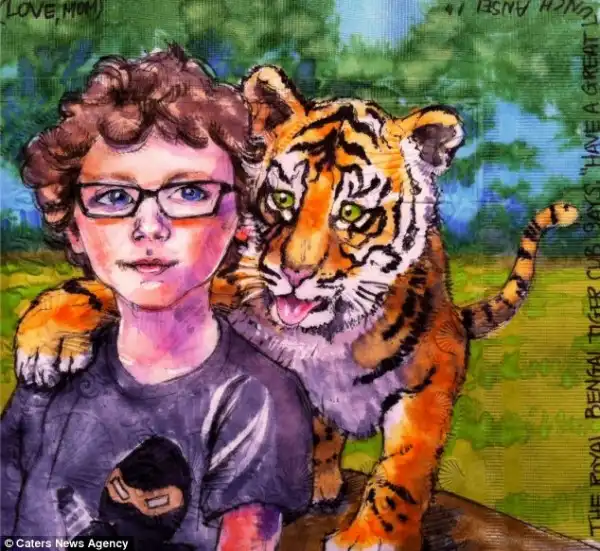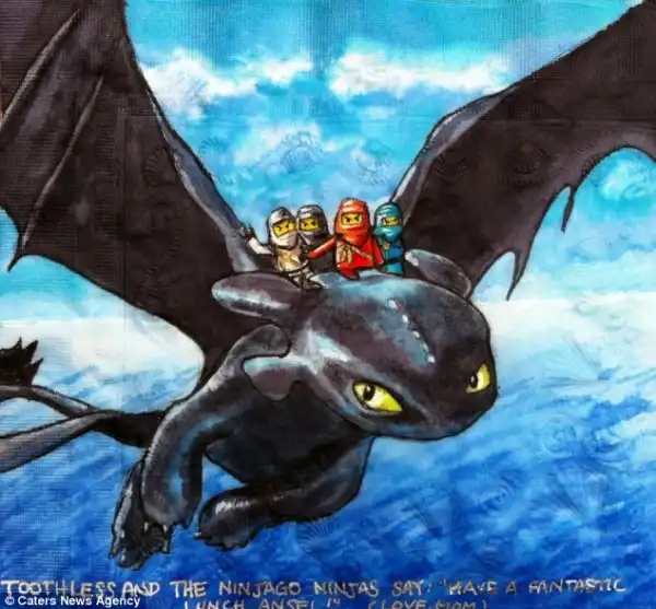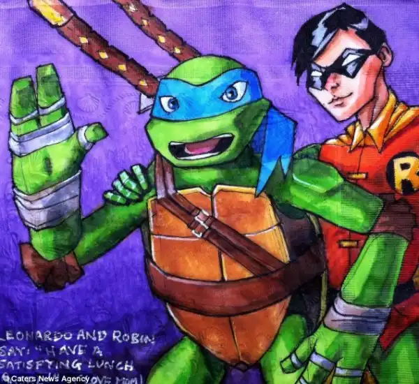Нины Леви разрисовывает салфетки для своих сыновей.
