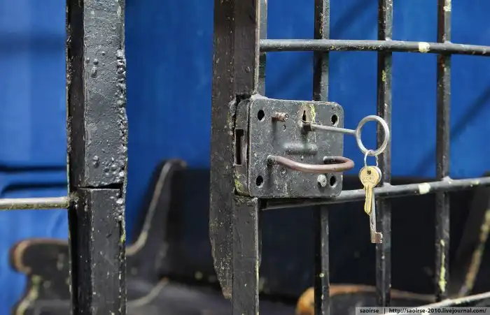 Оказавшись в камере мы опасались, что она закрыта и это было бы не очень хорошо, так как обратно вылезать намного труднее, а звонить спасателям из такого места было бы слишком абсурдно. К счастью связка ключей висела в замке.