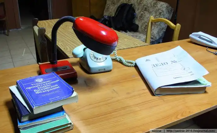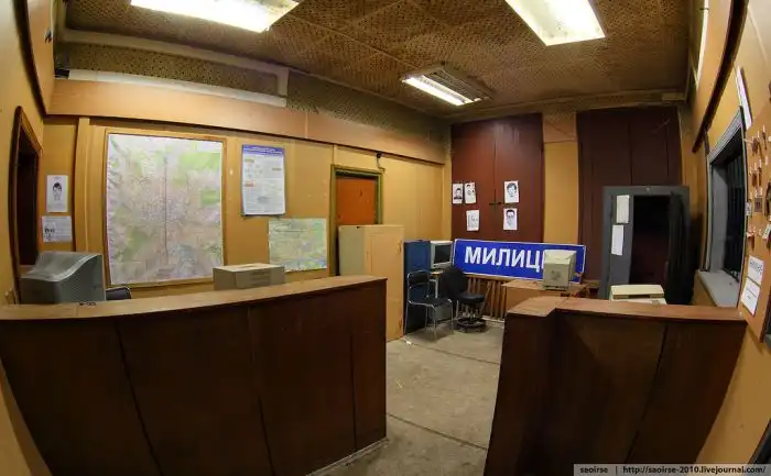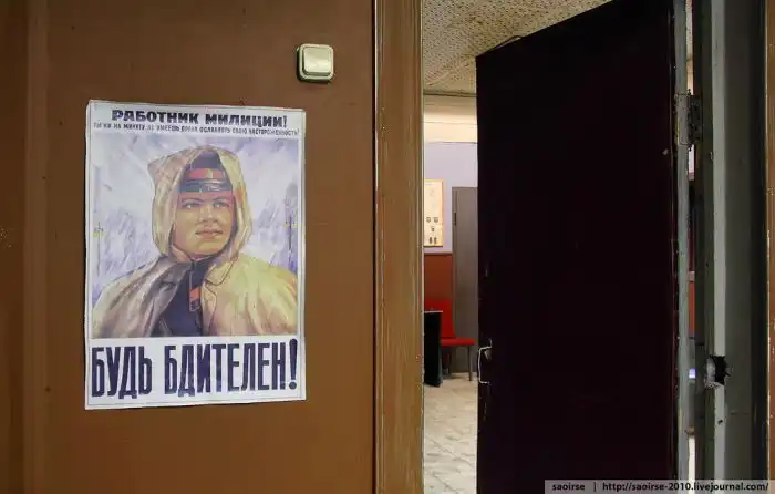 В помещении рядом с камерой еще лежит старая табличка с надписью "милиция". Видимо ее не выбрасывают на случай обратного переименования, кто же знает, что придет в голову вышестоящему руководству.