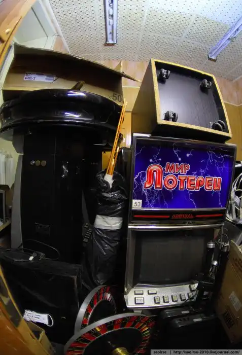 Ну а теперь пришло время разобрать фальшстенку и посмотреть, что там. Как и ожидалось там оказалось тьма конфискованных игровых автоматов. Все они принадлежали довольно известному казино в Москве.