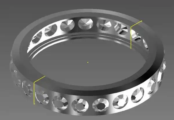 Весь процесс задокументирован в блоге автора. Первым делом проект создаётся в программе AutoCAD для 3D-моделирования: нужно рассчитать, чтобы после добавления деталей кольцо вышло правильного внутреннего диаметра, размеры камней и углублений под них, а также расстояние между углублениями.