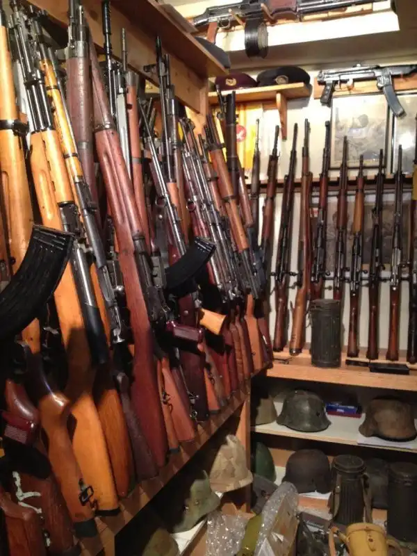 ... внушительная коллекция стрелкового оружия разных стран и эпох. Более 500 единиц. От оружия Первой Мировой до самых современных образцов. Тут и винтовки, и автоматы, и пулеметы, и даже гранатометы. Все оружие боевое и поддерживается в идеальном состоянии. Есть изрядный запас боеприпасов. В случае нападения зомби дядька сможет вооружить небольшой городок для эффективной обороны. Самым удачливым ополченцам достанутся даже каски!