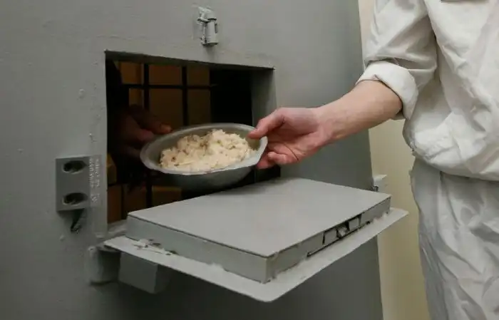 Первое, второе, напиток и ложка. В тюрьме вилок нет.