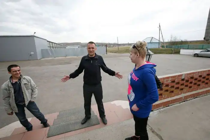 Его встречает жена (справа). Красноярский край, 10 мая 2013.