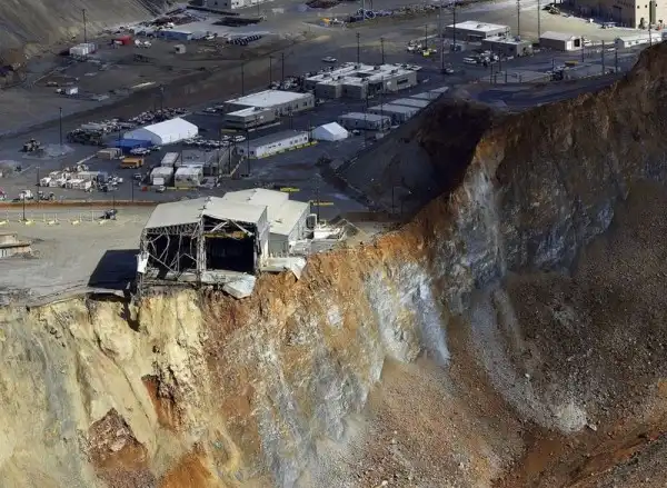 Сейчас он закрыт из-за гигантского оползня, который засыпал технику, оборудование и уничтожил часть комплекса зданий, находящихся у карьера.