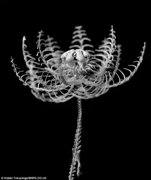Все эти скульптуры цветов изготовлены японским скульптором Хидеки Токусиге из костей умерших мышей и крыс.Свою коллекцию он назвал «Хонебана» — костяные цветы. Таким образом Хидеки хочет почтить цикл жизни и смерти и подчеркнуть в нем элемент перерождения. Так мертвые животные у Хидеки обретают свою вторую жизнь в цветах.