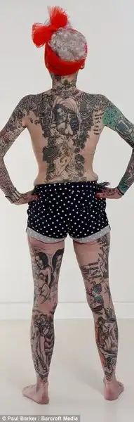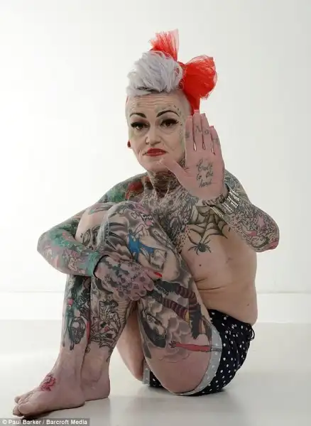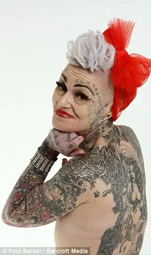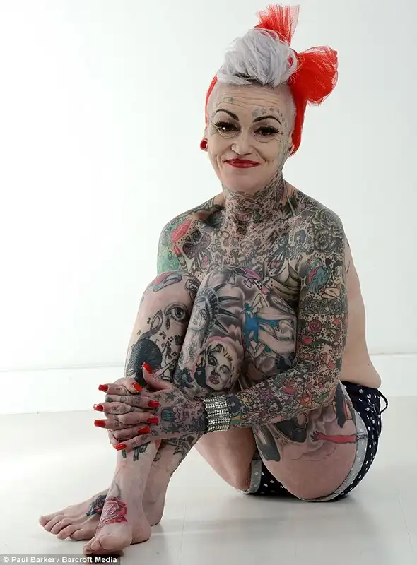 Вот так Аманда выглядит сейчас. Сразу после развода начала делать себе татуировки, сейчас ей 49 и её тело покрыто на 80% татуировками.