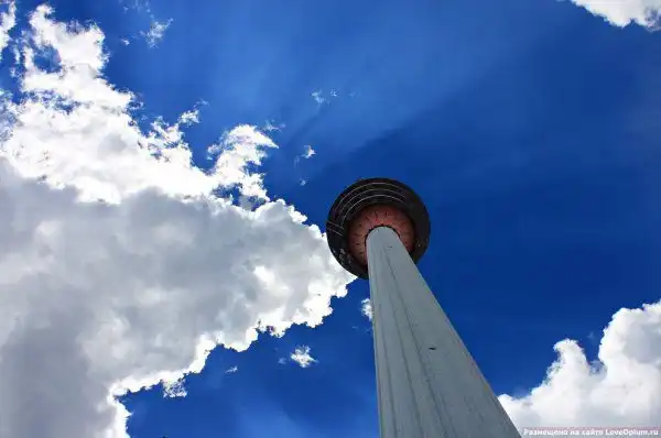 Сверху в башне расположен вращающийся ресторан.