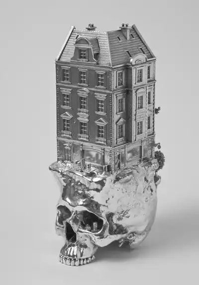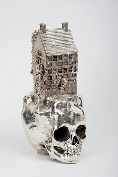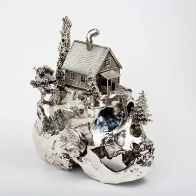 На черепушках «вырастают» домики, фургончики, пейзажи, маяки. Работы Миккельсена как будто напоминают нам о красоте мира и нашем страхе перед утратой.