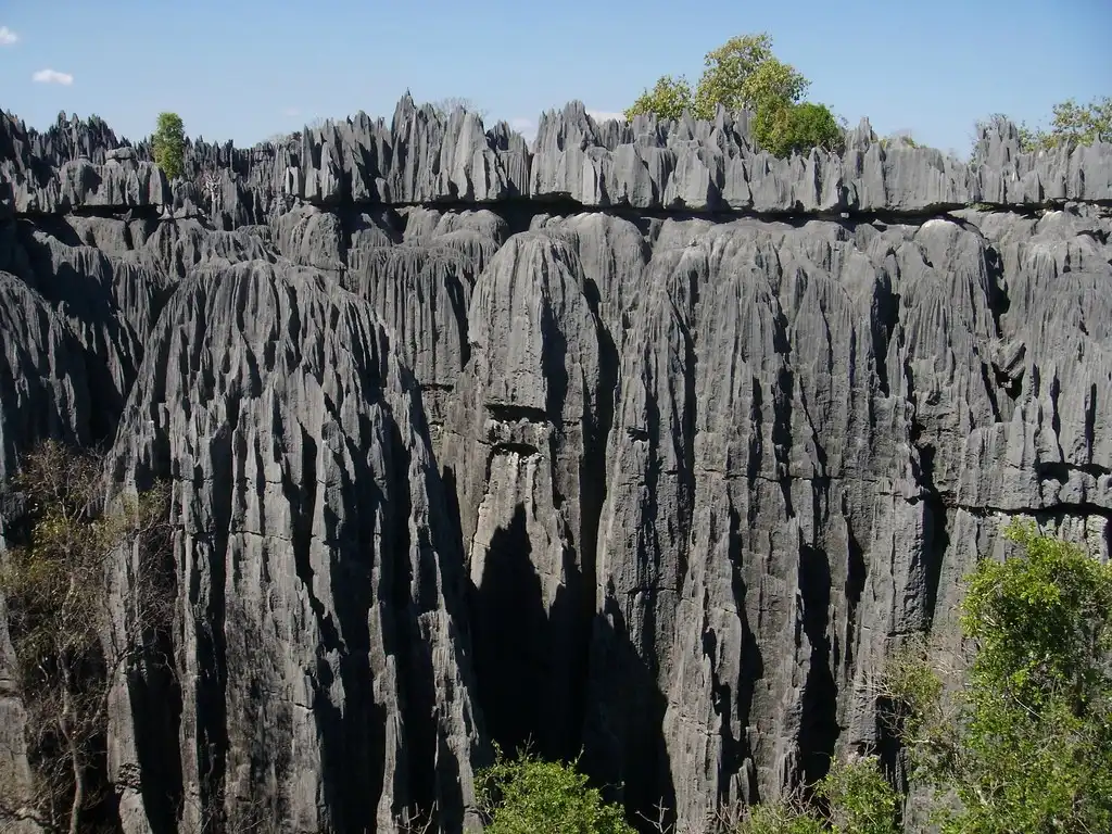 Целый лес карстовых пиков высотой до 50 метров, служит безопасным местом обитания уникальных в природе, белых лемуров.