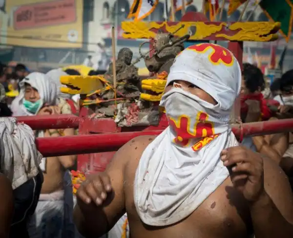 Это интересный и яркий религиозный праздник со множеством ритуалов и уличных шествий. Проходит он в течении девяти дней в первой декаде 9-го месяца Китайского лунного календаря (это сентябрь - октябрь месяц)... Всё верно, праздник Китайский и проходит на Пхукете (провинция и остров в Таиланде), так как более 35% населения по происхождению китайцы. Праздник посвящён Девяти Богам Имеператорам (Nine Emperor Gods) в соответствии с Даосисткой религией.