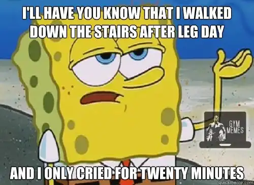 Знаете, я спускался по лестнице на следующий день после тренировки на ноги. И я плакал всего двадцать минут!