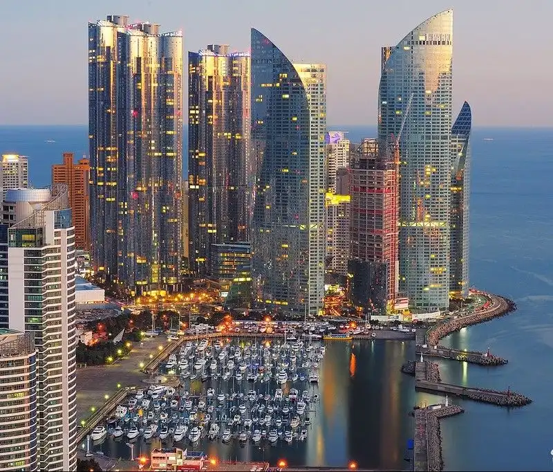 Увидев первое изображение можно подумать, что это проектный рендер: любят архитекторы пощекотать такими рисунками эго своих заказчиков. А лет 30 назад вся фантастика в журналах "Техника молодежи", "Юный техник" или "Следопыт" сопровождалась именно такими изображениями будущего.Но это реальный вид с жилого комплекса Зенит во втором по значению городе Южной Кореи – Пусане. Том самом Пусане, что был последней опорой, небольшим пятачком, с которого южнокорейская армия и, пришедшие на помощь ей войска ООН (в основном американские), осенью 1950 года переломили ход корейской воны и оттеснили армию Ким Ир Сена на исходные позиции.