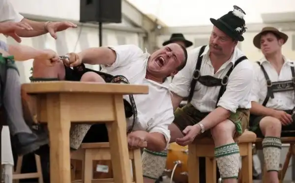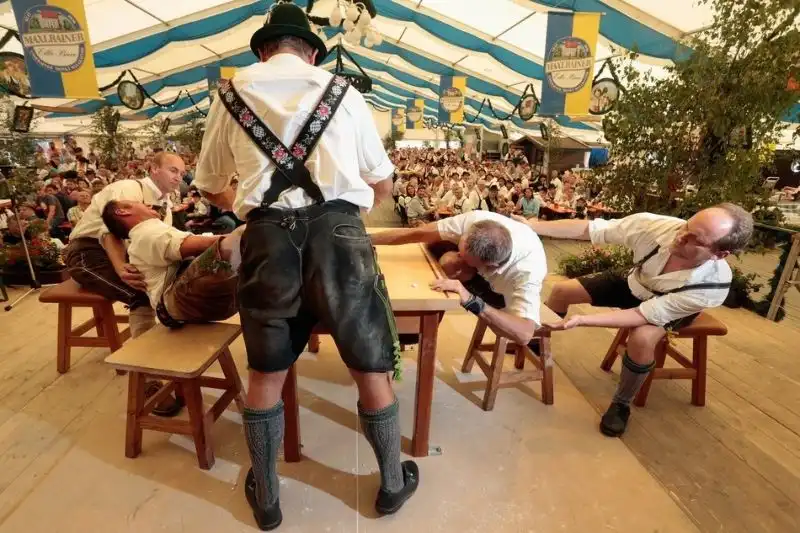 Да, чемпионат по борьбе на пальцах действительно существует, и это самый настоящий вид спорта в Германии, в котором мужики в ледерхозе пытаются перетянуть в свою сторону руку противника, держась средним пальцем за кольцо из кожи. В 2013 году проходил 60-й по счету чемпионат. По окончанию все накачались пивом, понятное дело.