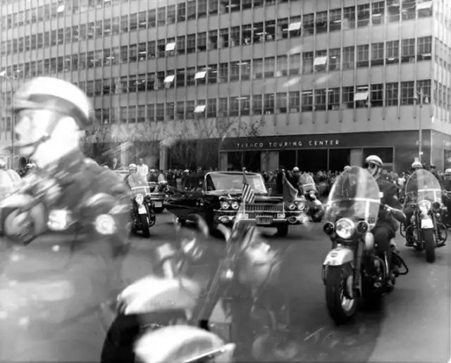 Кортеж Советского лидера Никиты Хрущева прибывает в Waldorf-Astoria Hotel (Нью-Йорк), 1959 год.