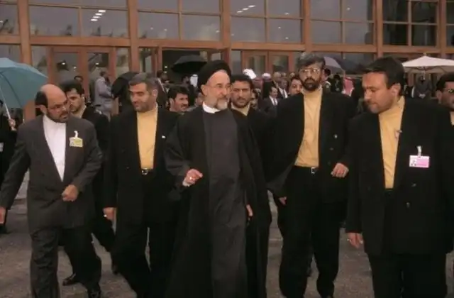 Иран, Тегеран, 1997 год. Президент Мохаммад Хатами в окружении телохранителей.