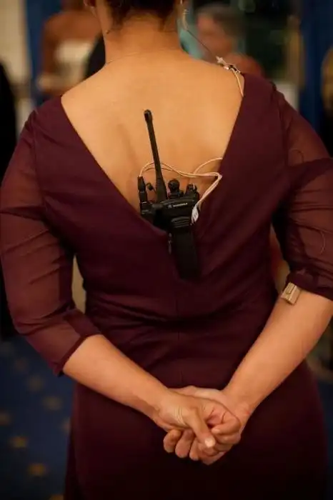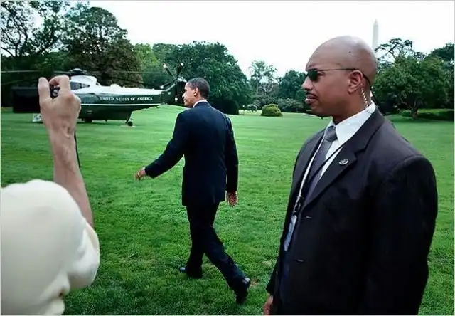 Агент Секретной службы США во время выполнения своих служебных обязанностей. СМИ называют ее помощником первой леди США Мишель Обамы.