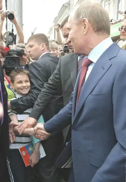 Школьника, который подбежал пожать руку Владимиру Путину во время общения с народом, жестко контролирует охрана президента.