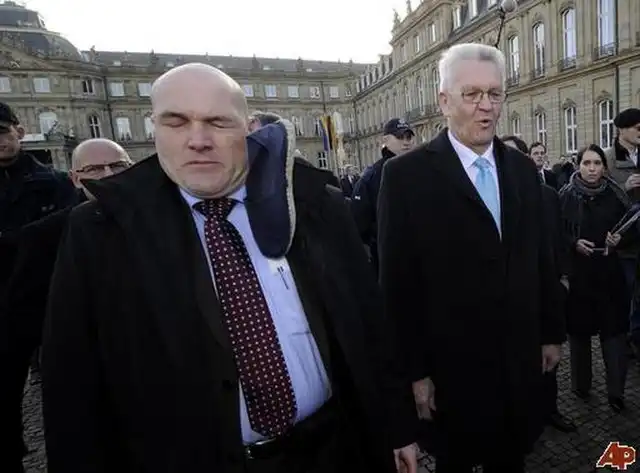 14 января 2012 года протестующие закидали ботинками премьер-министра Баден-Вюртемберга Винфрида Кречманна. В самого политика они не попали, но зато попали в его телохранителя.