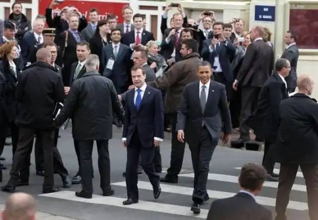 Президент США Барак Обама и президент России Дмитрий Медведев во время пребывания на саммите G8 в Довиле, Франция.