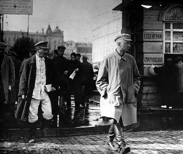 Советский политический, государственный и военный деятель Иосиф Сталин (Джугашвили) в сопровождении охраны.