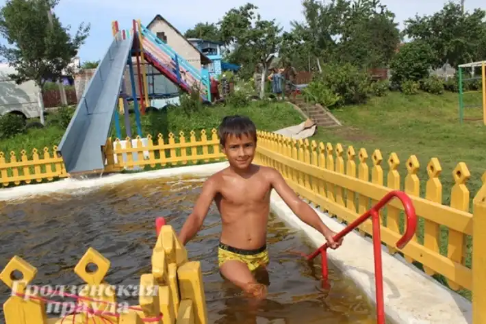 Высокая горка, ведущая в бассейн, чистый, ухоженный пляж, волейбольная площадка и футбольное поле, трамплины для прыжков в реку, различные качели — это далеко не полный список развлечений в частном сельском «аквапарке», который создал Вячеслав Козел, житель деревни Огородники, что в Лидском районе.