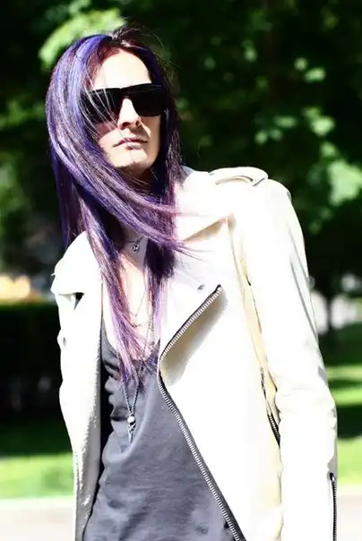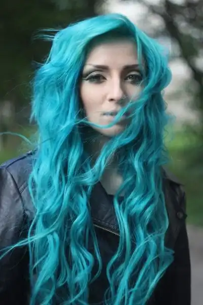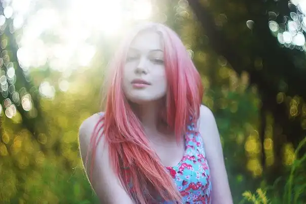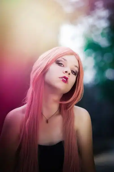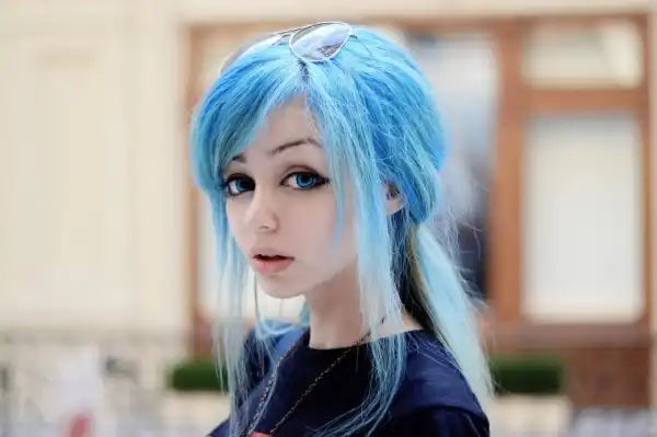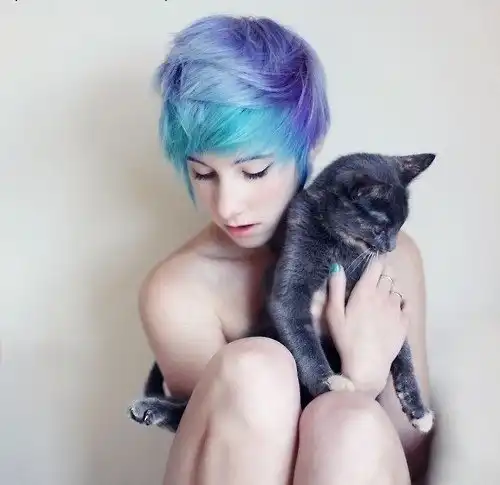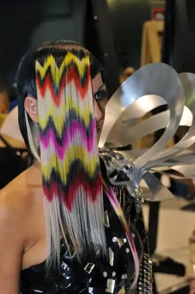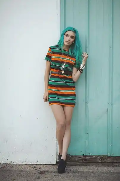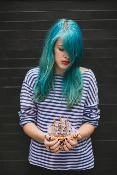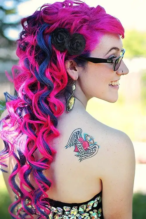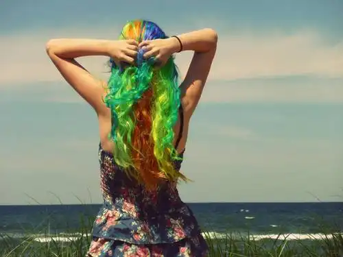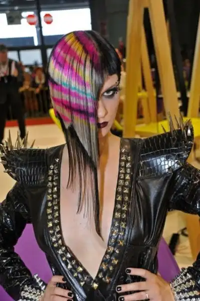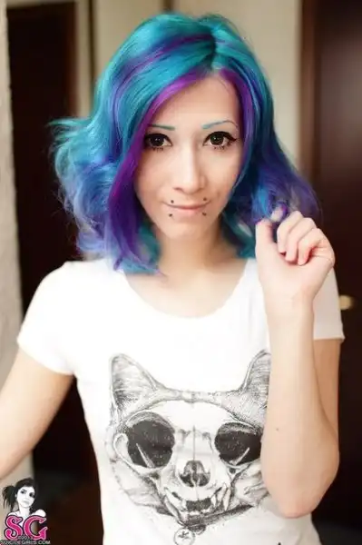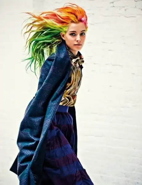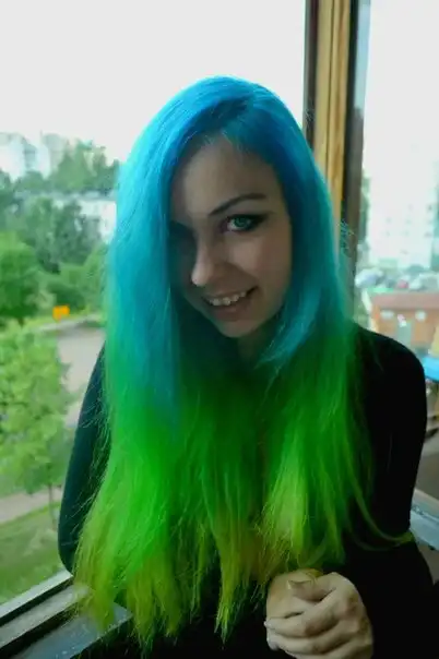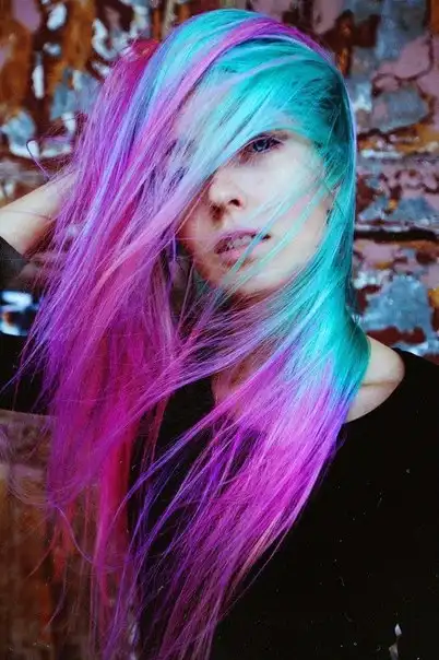 С цветными волосами.