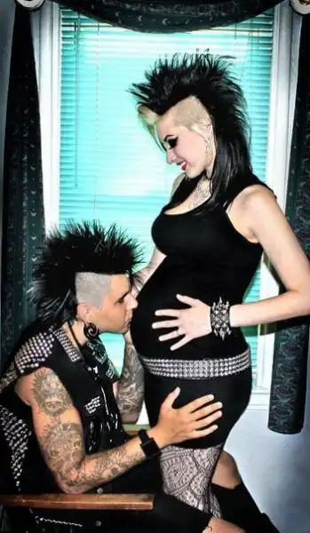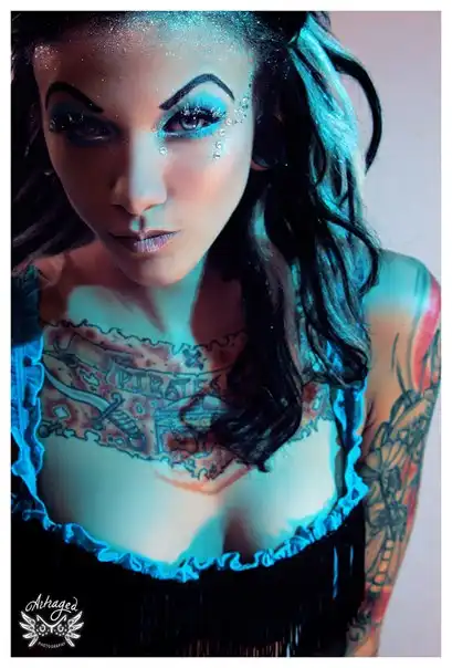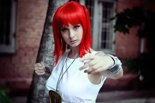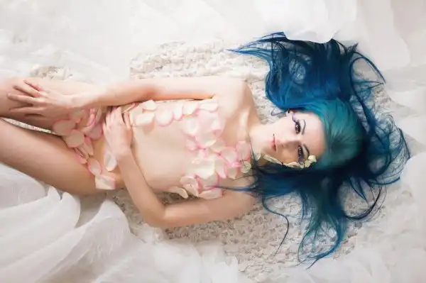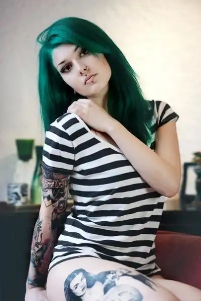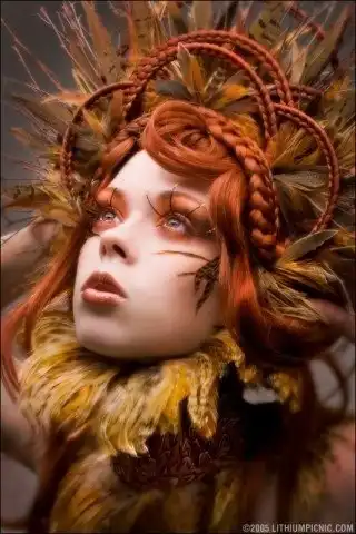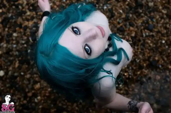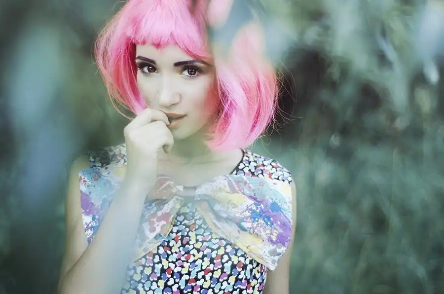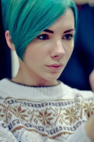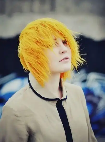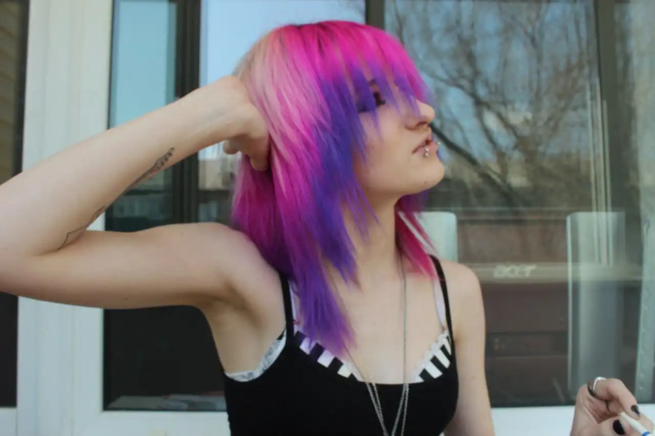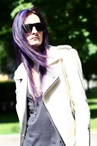 С цветными волосами.