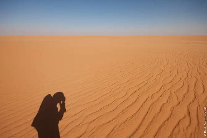 Там, где царят песок и ветер дорогу может быть не видно вообще, колею от проехавшей машины быстро заносит, и на следующий день о ней ничего не напоминает. Внедорожники везли нас через дюны, какие-то из них были твердыми и по ним можно было легко ехать, а какие-то — сыпучими, и машина вязла, но Омар знал что к чему. Не в первый раз я удивлялся тому, как он находил дорогу. Мы могли ехать через пустыню, а потом раз и вновь возвращались на неожиданно появившуюся колею. Иногда мы останавливались, заприметив необычный ландшафт или достойный кадра вид, но я смотрел на это сквозь полуприкрытые глаза, лишь изредка доставая фотоаппарат.