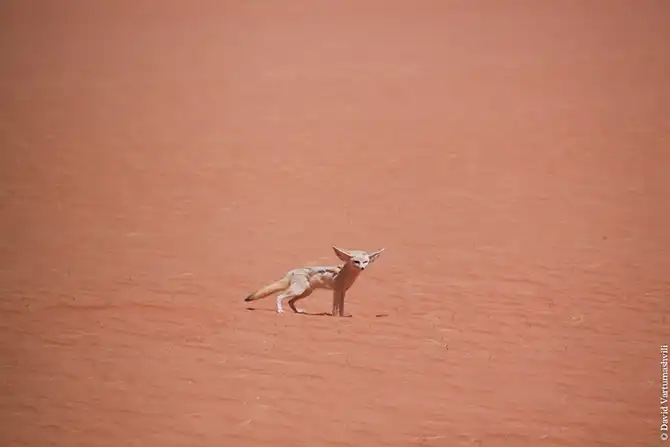 Неожиданно встретили длинноухую лисицу фенек, забавный зверек был так любезен, что дал себя заснять.