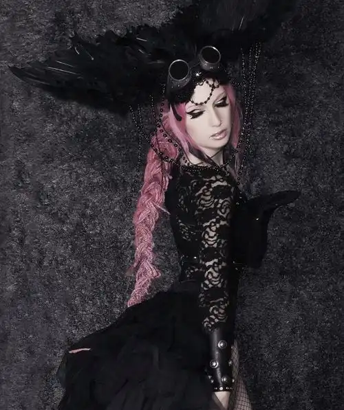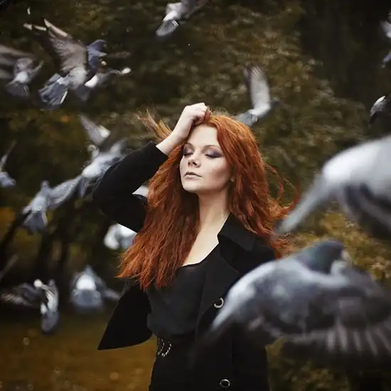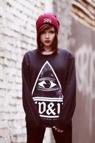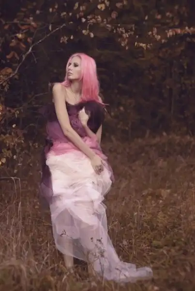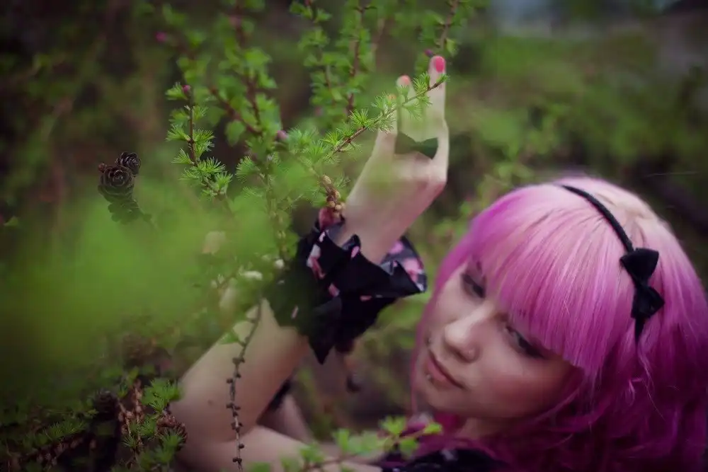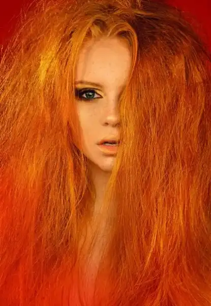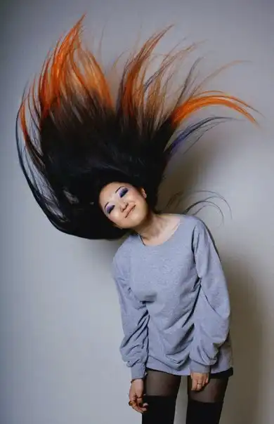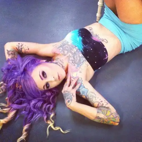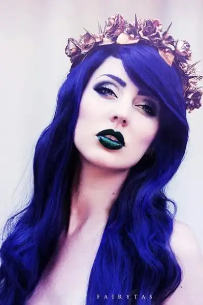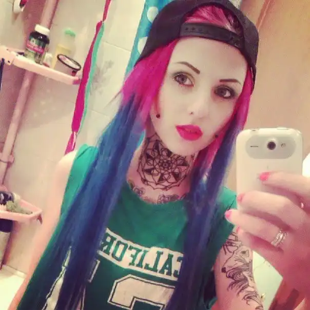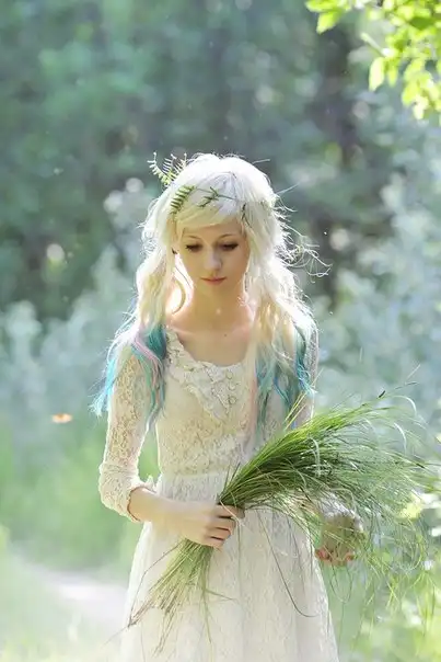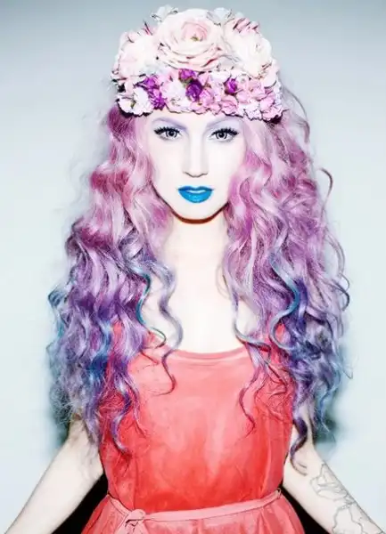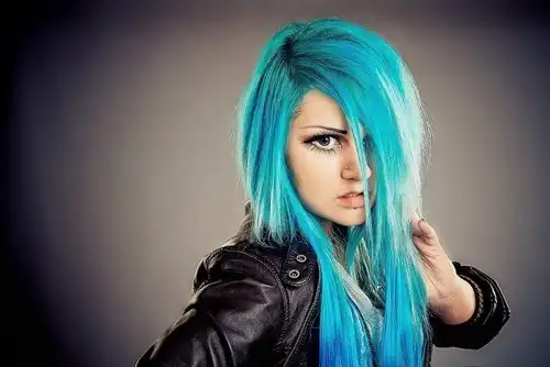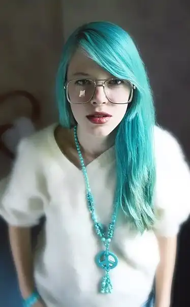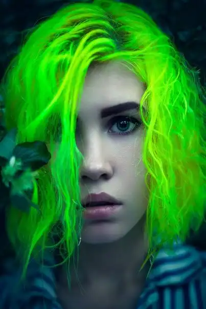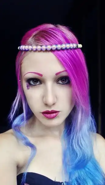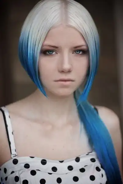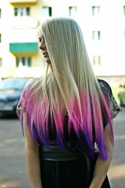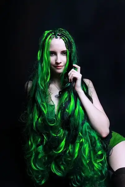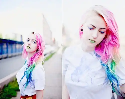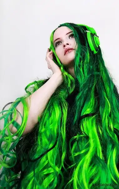 С цветными волосами.