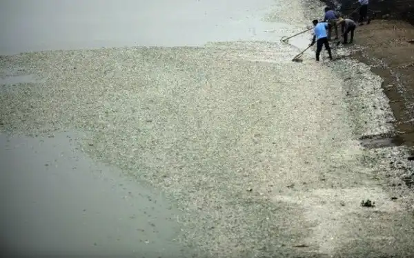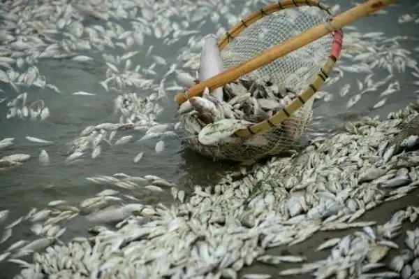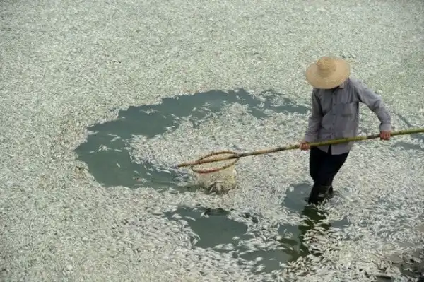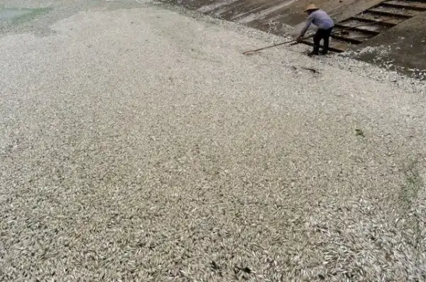 Как вы думаете, что это? Не буду вас мучать догадками - это все мертвая рыба, которая погибла в китайской реке Фухе. Рыбакам пришлось вылавливать из воды 30! тонн мертвой рыбы, которая погибла из-за масштабной "утечки" аммиака с неподалеку расположенного завода. Я не удивлюсь, если скоро на рынке появятся "свежие консервы" по "акционной" цене..