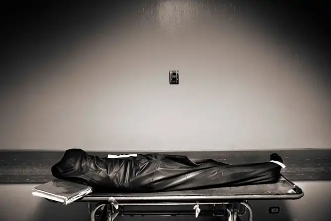 «Сикариос, киллеры в Латинской Америке». Гватемала-Сити. Труп убитого сикарио отправляется в морг больницы cвятого Иоанна в столице Гватемалы. Одна из самых популярных и уважаемых профессий в Латинской Америке ― киллер, или сикариос. Цена за убийство колеблется в диапазоне от 20 долларов до десятков тысяч. Фото: Хавьер Арсенильяс
