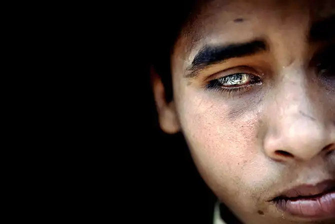 «Вторая катастрофа Бхопала». Индия, штат Мадхья-Прадеш. Салман (13 лет), страдающий тяжелой формой неврологического расстройства и слепотой, у себя дома в бедном квартале Ория-Басти в Бхопале. Почти 30 лет прошло с момента жуткой катастрофы, случившейся по вине компании Union Carbide (теперь DOW Chemical) в Бхопале, но многие семьи до сих пор живут в том ночном кошмаре, который начался для них 3 декабря 1984 года. Фото: Алекс Маси