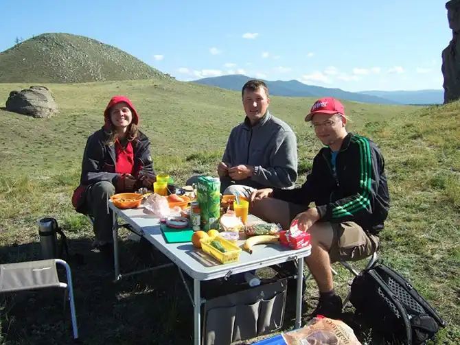 На обратном пути делали остановку у Лежащего Льва. Вид этой маленькой горы над всей долиной и рекой Селенгой захватывал дух.