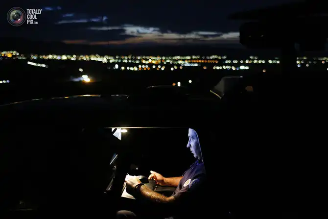 Сербский пограничник смотрит на экран тепловизионной камеры недалеко от Прешево.