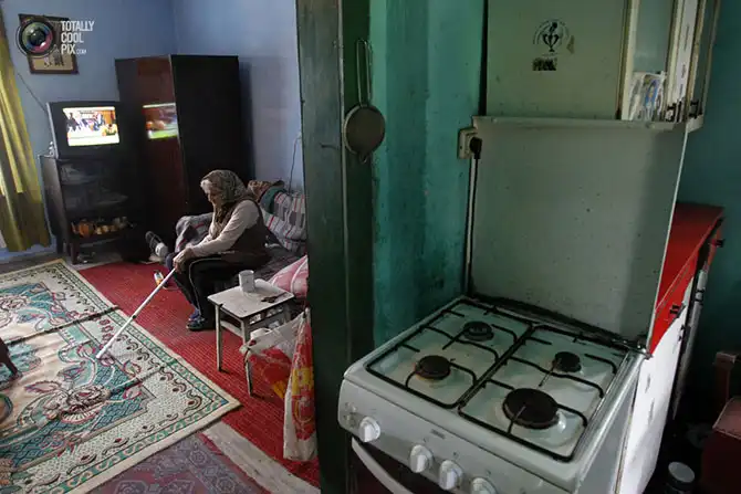 Пенсионерка сидит в своём доме в городе Аниноаса к западу от Бухареста, Румыния.