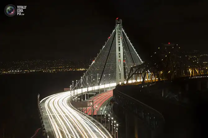 Автомобили движутся по мосту между Сан-Франциско и Оклендом, штат Калифорния, США.