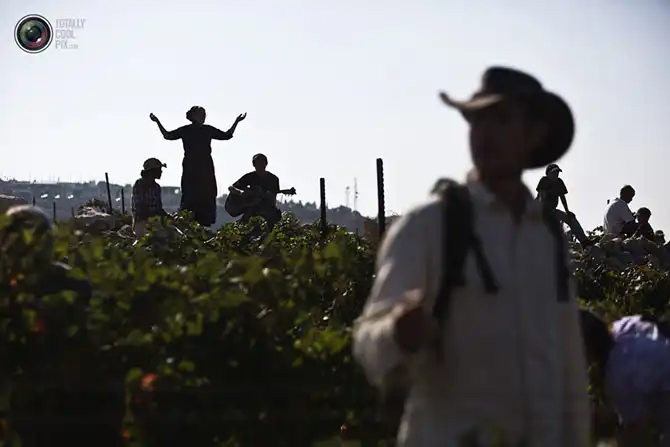 Волонтёры собирают урожай винограда в еврейском поселении недалеко от Наблуса.