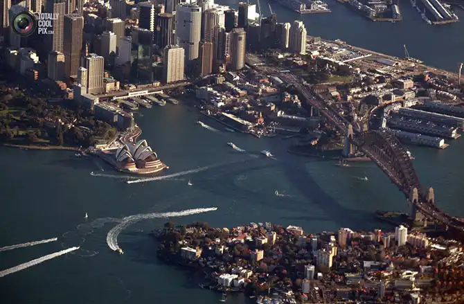 Вид моста Харбор-Бридж и Сиднейского оперного театра.