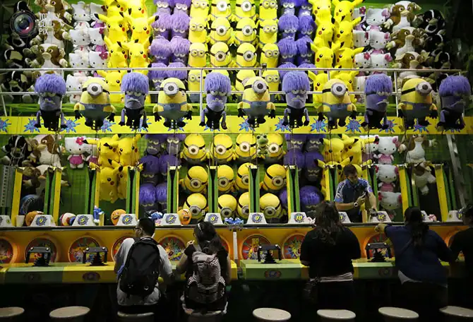 Люди пытаются выиграть приз на ярмарке округа Лос-Анджелес в Помоне, штат Калифорния, США.