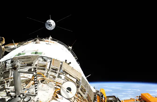 Космический грузовой корабль «Альберт Эйнштейн» приближается к МКС.