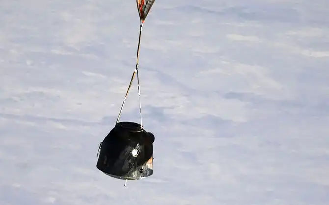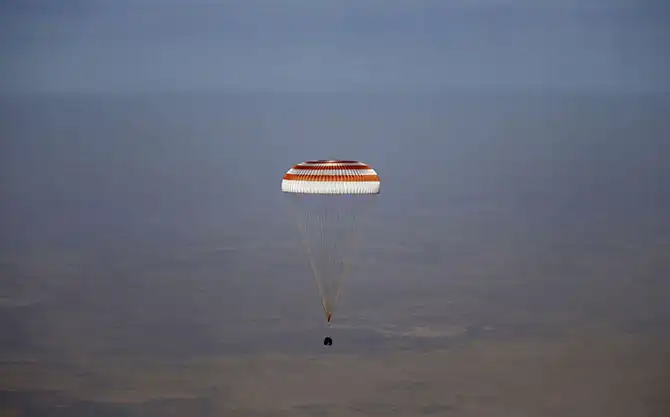 36-я экспедиция на МКС заканчивается. На фотографии — спускаемый модуль с космонавтами, 11 сентября 2013.