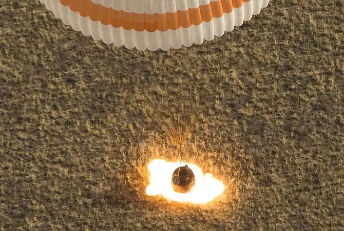 Приземление спускаемого аппарата в степи Казахстана, 11 сентября 2013.