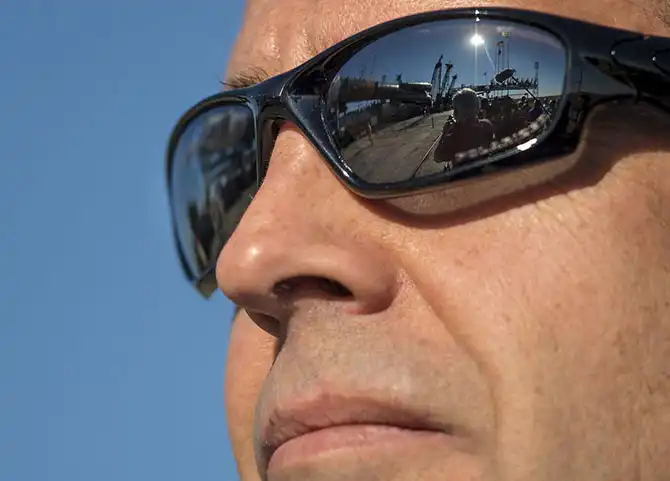 Бортинженер Рик Мастраккио из НАСА смотрит, как «Союз ТМА-09М» прибывает на стартовую площадку космодрома Байконур на поезде, 26 мая 2013.